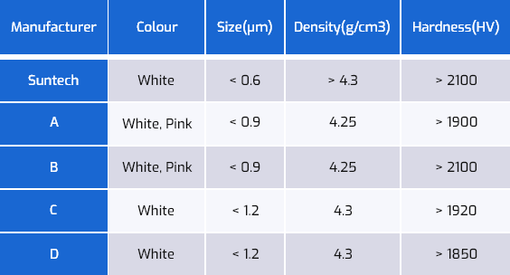 Comparison of material properties among various manufacturers